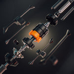 - 5 interchangeable weights: 4× 65g (black), 1× 135g (orange)